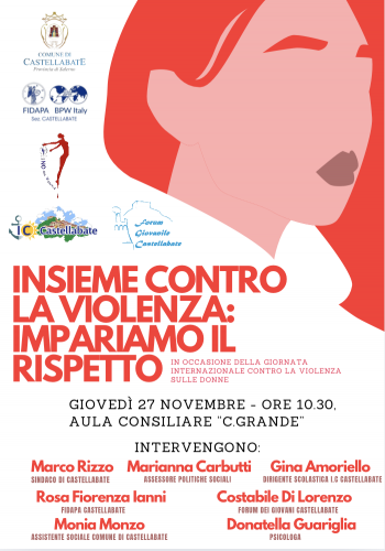Il Comune di Castellabate, in occasione della Giornata Internazionale contro la Violenza sulle Donne, organizza un incontro di sensibilizzazione pubblica dal titolo “Insieme contro la violenza: impariamo il rispetto”.