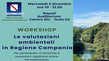 Mercoledì 3 dicembre 2025 dalle ore 10:00 alle ore 13:30 si terrà presso l 'Auditorium Regione Campania - Isola C3, Centro Direzionale a Napoli il workshop sul tema "Le valutazioni ambientali in Regione Campania".