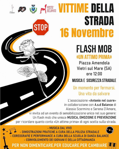 Domenica 16 novembre, Piazza Amendola a Vietri sul Mare diventerà il palcoscenico di un’iniziativa speciale dedicata alla sicurezza stradale. L’evento, intitolato “Un attimo prima”, unisce arte e prevenzione in un originale flash mob che coinvolgerà cittadini e giovani in un momento di riflessione sulle scelte consapevoli alla guida.