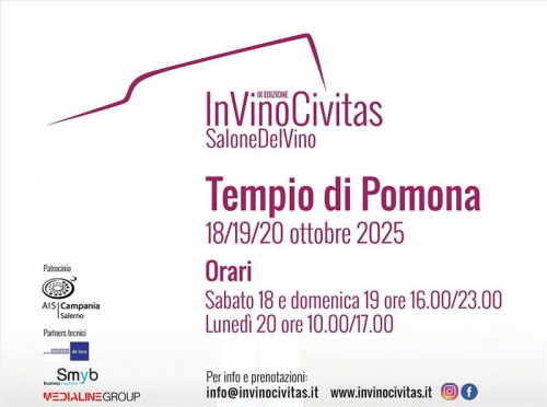 Dal 18 al 20 ottobre, Salerno ospita la nona edizione di In Vino Civitas, il Salone del Vino di Salerno che, da quest’anno, entra nel cuore città, presso il Tempio di Pomona, scegliendo una nuova location di grande prestigio e valore artistico e culturale. Oltre a essere strategicamente perfetta per trasformare la città e il suo centro storico nel bicchiere più prezioso in cui degustare i prodotti del Salone del Vino, questo novità rappresenta il fulcro di un nuovo programma per l’evento, ideato e promosso dall’Associazione Createam, in collaborazione con la Camera di Commercio.