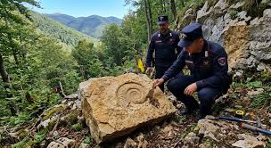 Nei giorni scorsi, il Nucleo Carabinieri Parco – Teggiano ha rinvenuto, in località Bosco Calvo nel Comune di Monte San Giacomo, una lastra su cui è presente una impronta fossile, molto probabilmente riconducibile ai resti di un organismo marino.